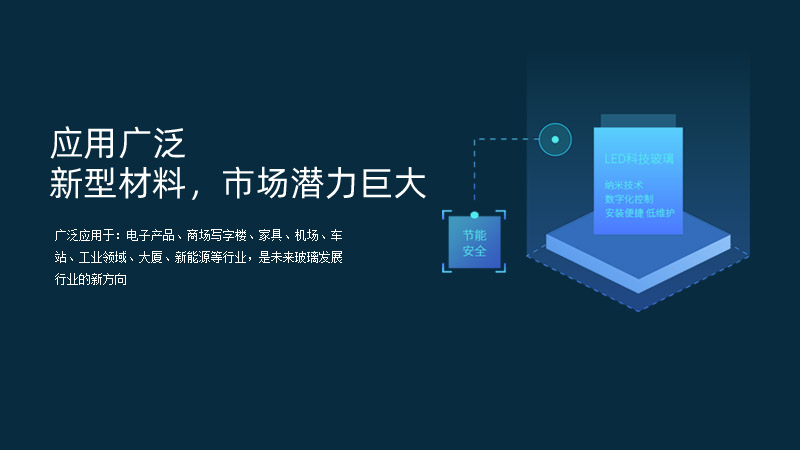 科技玻璃廣泛應用于:電子產品、商場寫字樓、家具、機場、車站、工業(yè)領域、大廈、新能源等行業(yè),是未來玻璃發(fā)展行業(yè)的新方向。